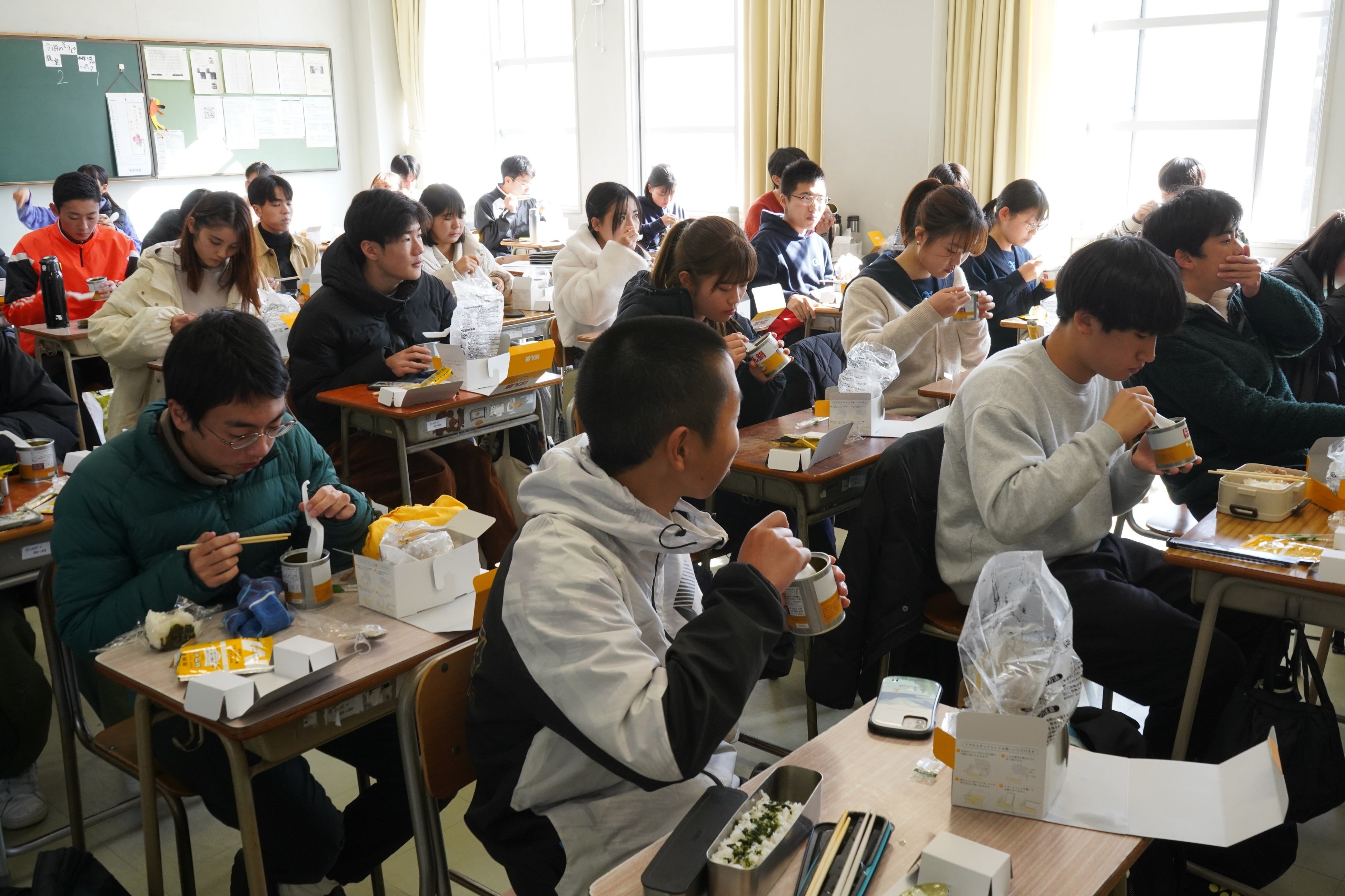 この度はこのような素晴らしい機会に携わることができ、一介の教員としても光栄な思いでいっぱいです。昨年・今年と、生徒らが味ぽんのパーパスである「半径1メートルのしあわせ」を考えていく中で、「忙しい日々の中でも自分たちの居場所であたたかく過ごしたい」との思いからアイデアが形になっていきました。彼らがもつ「学校」や「仲間」の存在の大きさを感じ、そのような場をつくる学校の役割を改めて考えさせられたりもしました。また、“あたたかく過ごしたい”との思いは、被災現場でも持ちうる思いであろうと結びつき、災害食としての側面も議論の中から生まれていきました。