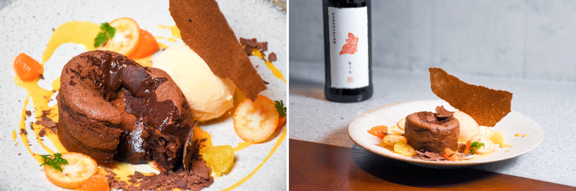 さらに温かいフォンダンショコラと一緒にアイスを食べると、香りが開き、より「陽乃鳥」の芳醇な香味を鮮明に感じることができます。