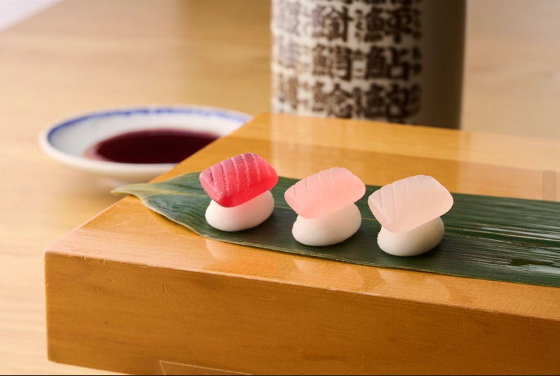 日本の代表食とも言えるお寿司が体験型のグミになって登場。グミでできたシャリとネタを自分で重ねて、赤身、中トロ、大トロのお寿司を再現して楽しむことができます。