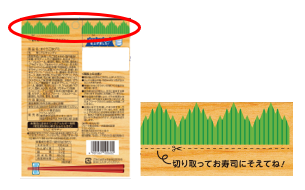 また裏面には、お寿司に添えるためのバランを切り取ることができる仕掛けも。完成したグミと組み合わせれば、まぐろ3種握り風グミの完成です。