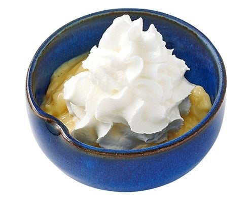 一口サイズのチーズケーキを串カツにしてホイプクリームを乗せました。とろシュワ食感がクセになる!