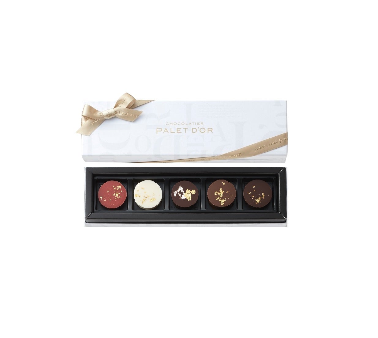 上記の4種に、ふわりとハーブが薫る甘酸っぱいベリー味の「パレドオール ルージュ」を加えたバリエーションBOX。カカオの選別・焙煎からカカオバターの搾油まで、自社で手掛けることで生み出されるスペシャリテをお楽しみください。