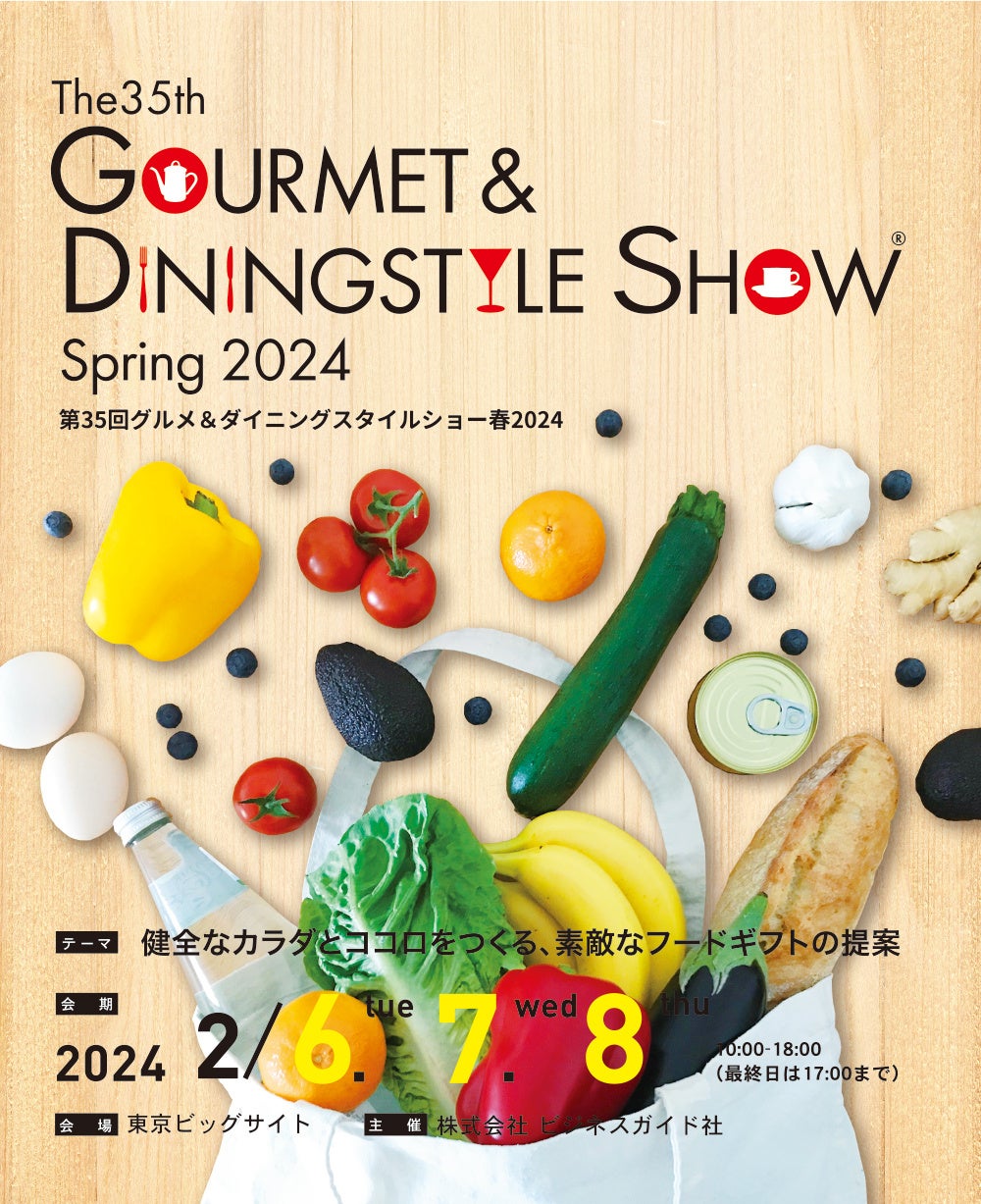 株式会社ビジネスガイド社(本社=東京都台東区、代表取締役:芳賀信享)は2月6日~8日、地域のプレミアムフードが集まる、品質・ライフスタイル志向の食の見本市「第35回グルメ&ダイニングスタイルショー春2024」を東京ビッグサイト東展示棟東2・3ホールで開催します。