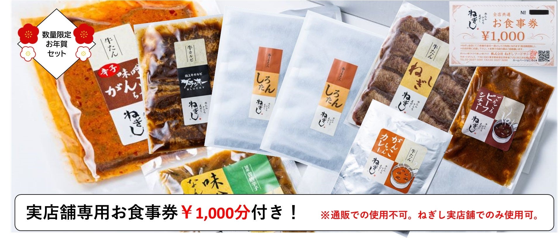 ■牛たんねぎし公式オンラインストア 実店舗食事券付きお年賀セットの販売