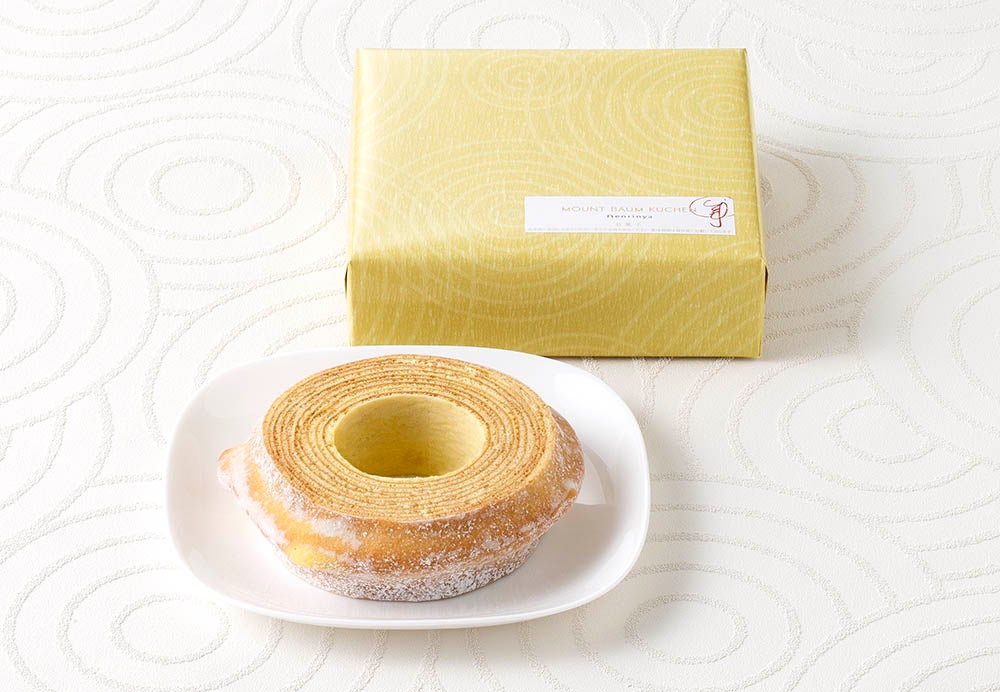 ねんりん家の代表作。⽪はカリッ、中はしっとり熟成の『マウントバーム しっかり芽』。濃厚なバター⾵味の⽣地を、独⾃の窯で⻑時間じっくり焼きあげておいしさを引き出した、こだわりのバームクーヘンです。