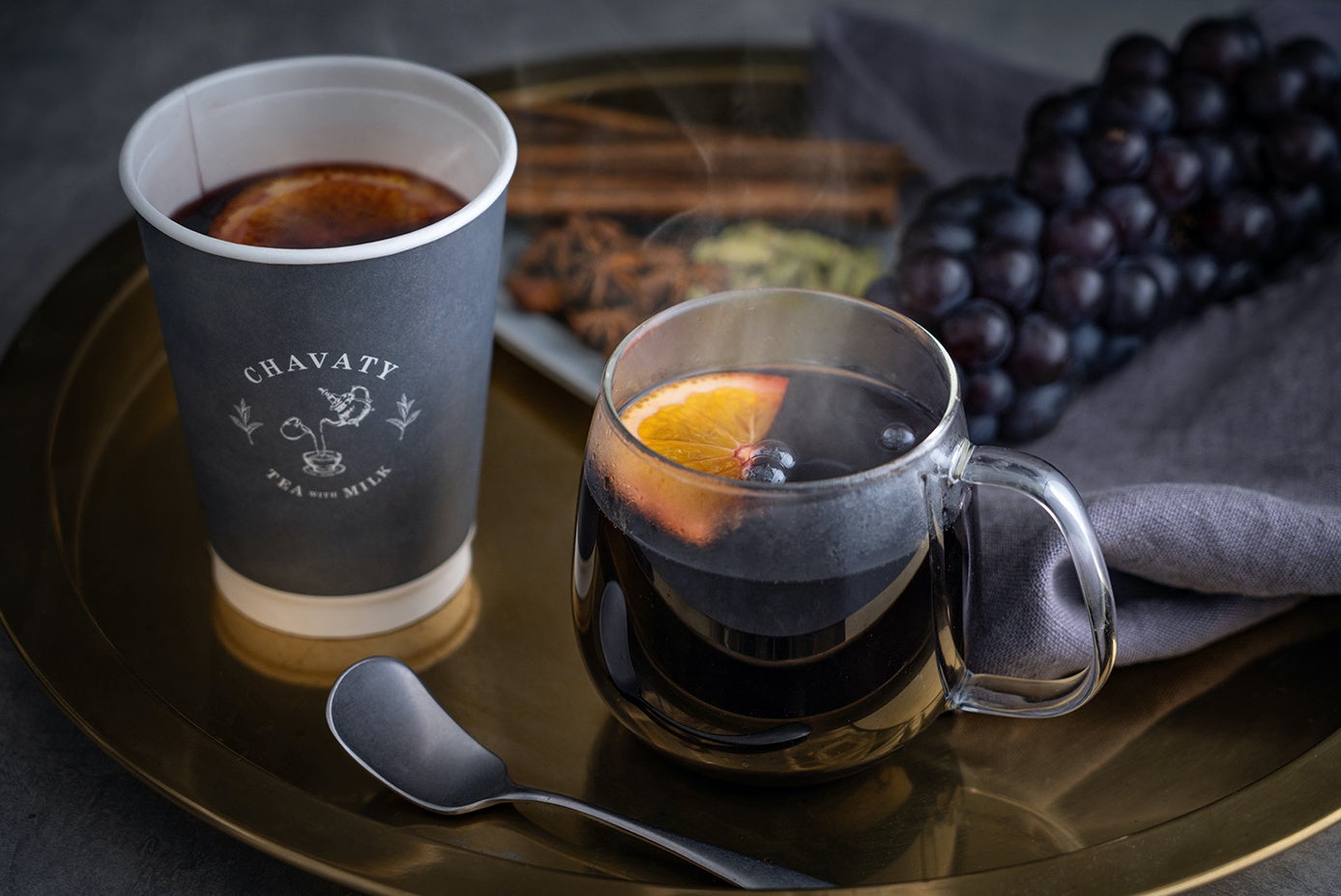 <冬季限定>季節限定のティーメニュー「グレープスパイスティー」も同時販売開始。カベルネ・ソーヴィニヨンの濃厚で深みある葡萄の香りと味わいに、スパイスやオレンジとウバティーを合わせた温まる一杯をご提供。