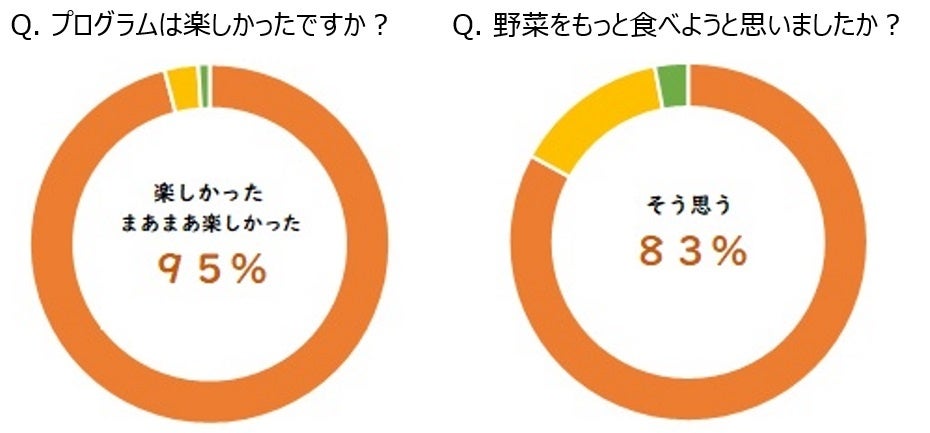 カゴメと放課後NPOアフタースクールが、保護者・学校の共通の「困りごと」であり、野菜不足要因の1つである「食経験による野菜嫌い」の克服を目指して開発した協働食育プロジェクトです。2018年4月にスタートし、これまでに約1万人以上の小学生がプログラムに参加、2019年には「キッズデザイン賞」を、2022年には農林水産省主催 第6回食育活動表彰で消費・安全局長賞を受賞しました。アンケートでは、帰宅後に保護者とプログラム内容を話す子どもが多く、家庭での食経験にもつながることで、さらに効果的になっていると考えます。「カゴメ野菜定点調査2022」によると、野菜好きを対象に「野菜を好きになったきっかけ」を調査したところ、食べることをはじめとする、様々な野菜との触れ合い体験があることがわかりました。同プロジェクトは両社の知見・ノウハウを活かしたプログラムを通じて、子どもたちが野菜を知ることを楽しみ、野菜をもっと好きになることで、子どもたちの野菜の摂取意欲の向上や教育現場での残食などの問題解決に貢献します。