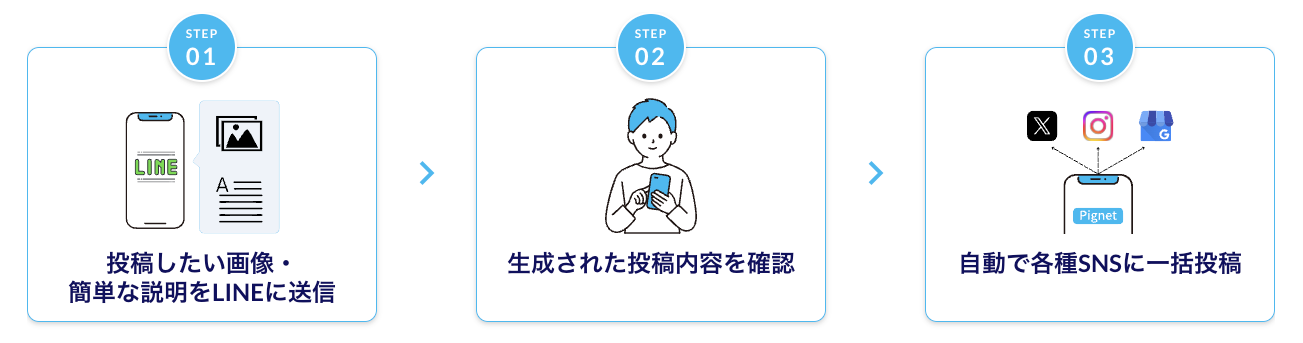 ・公式LINEのみで全てのプラットフォームで投稿できるから他のツールを使用方法を理解せずに投稿できるのがとても助かりました(食彩処 會津 様)