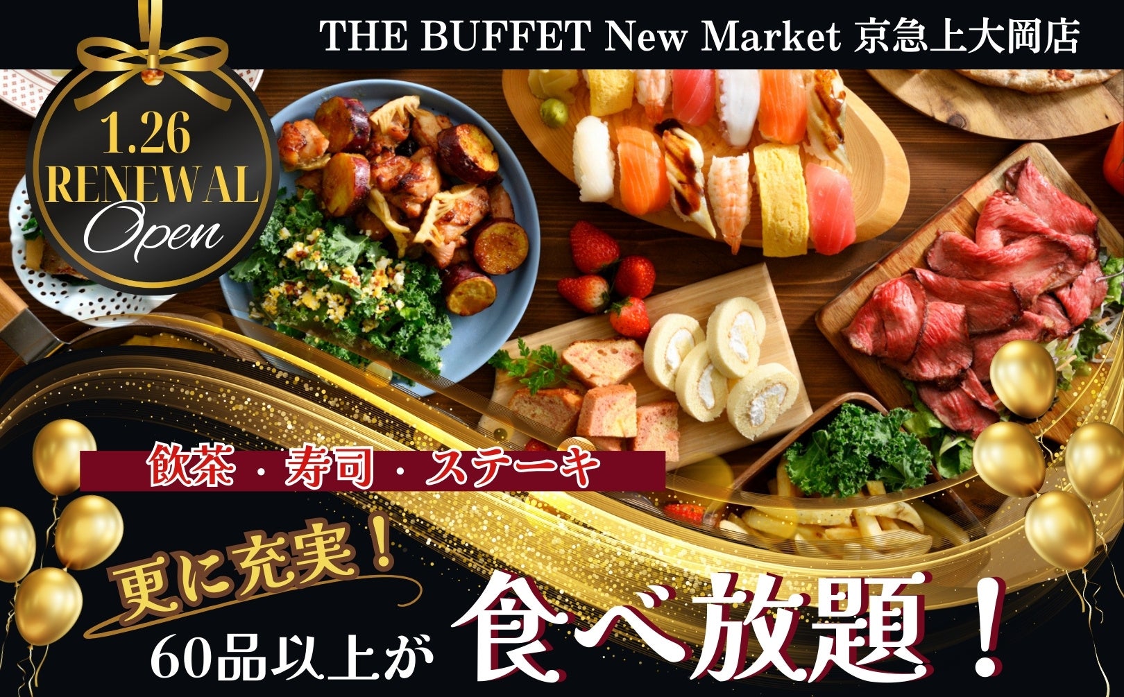 世代を超えて楽しめるグランブッフェ京急上大岡店が、2024年1月26日(金)より装い新たに「ザ ブッフェ ニューマーケット 京急上大岡店」としてリニューアルOPENいたします。