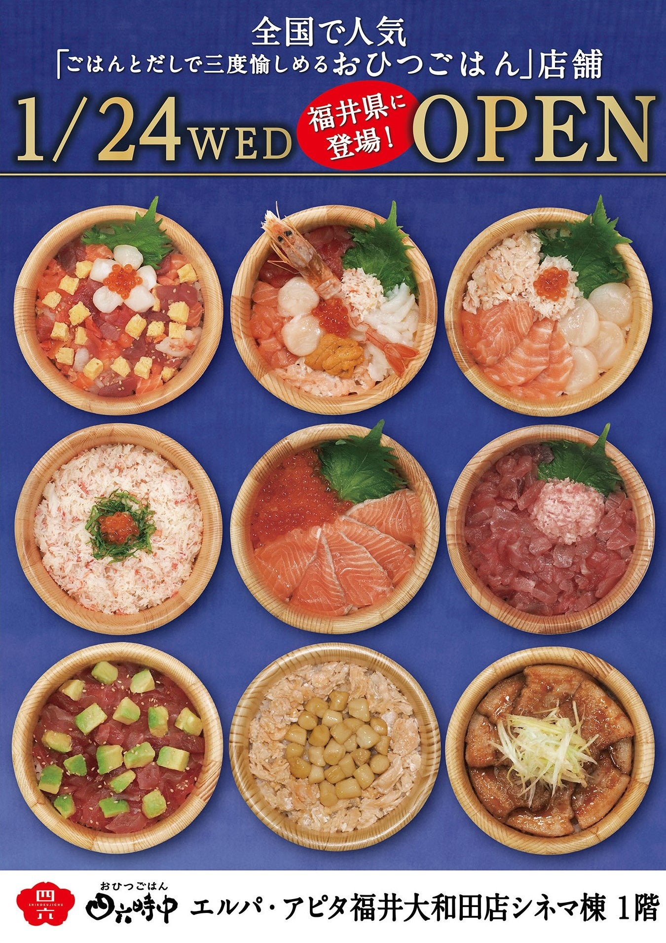 当社は、近年の生活様式の大きな変化に対応すべく、レストラン事業の再編を進めてまいりました。その一環として、当社の主力業態である『おひつごはん四六時中』へのリニューアルおよび新規オープンを積極的に行っております。この度、総合和食として営業してきた『天ぷら和食処四六時中』福井大和田店を“ごはんとおだしを味わうお店” 『おひつごはん四六時中』に業態変更し、1月24日にオープンいたします。福井県内での『おひつごはん四六時中』業態の出店は初となり、今回の出店により『おひつごはん四六時中』は全国77店舗となります。