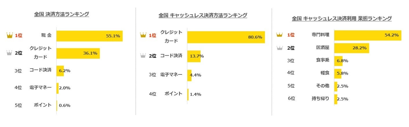 全国における決済方法では引き続き現金が55.1%で第1位となった。