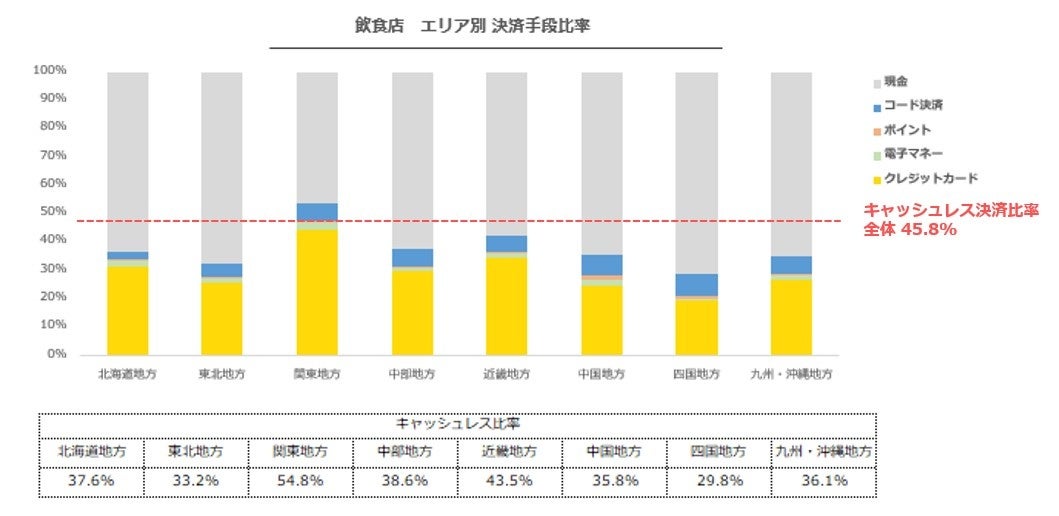キャッシュレス決済比率は全国で45.8%と、先月から0.3ptの減少となった。