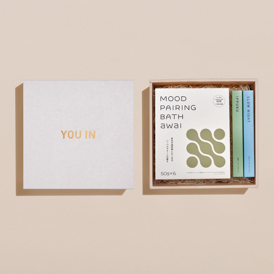 「YOU IN」は、気分やシーンに合わせる『ムードペアリング』を通して、今その瞬間の気分や状態に向き合い、寄りそい、肯定する、そんな体験を提案するウェルネスライフブランド*です。陽なときも陰なときも、日常の些細なひとコマから、ちょっと特別なひと時まで。この地で育まれた文化や歴史と共に、その瞬間を大切に思えるようなプロダクトを届けています。