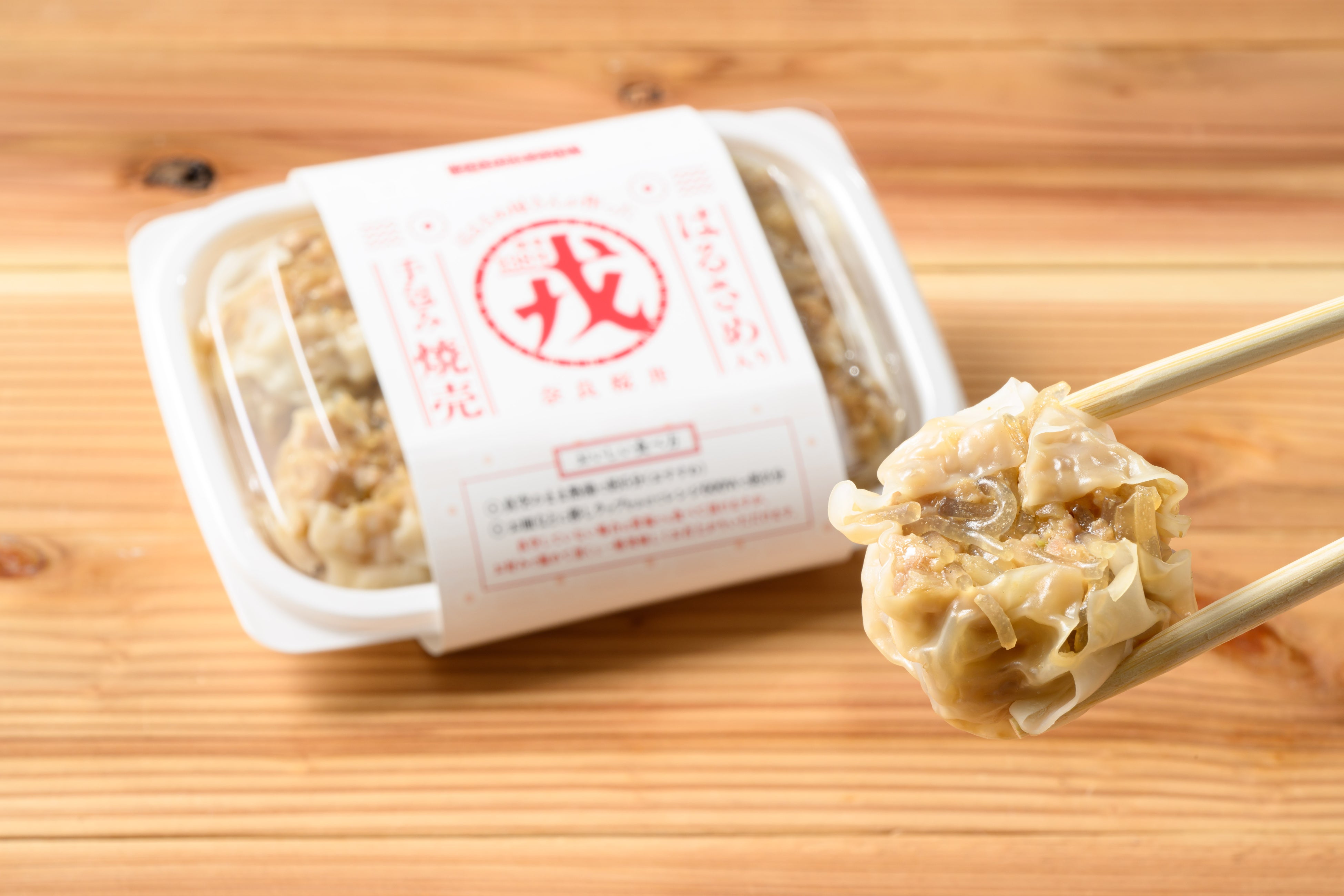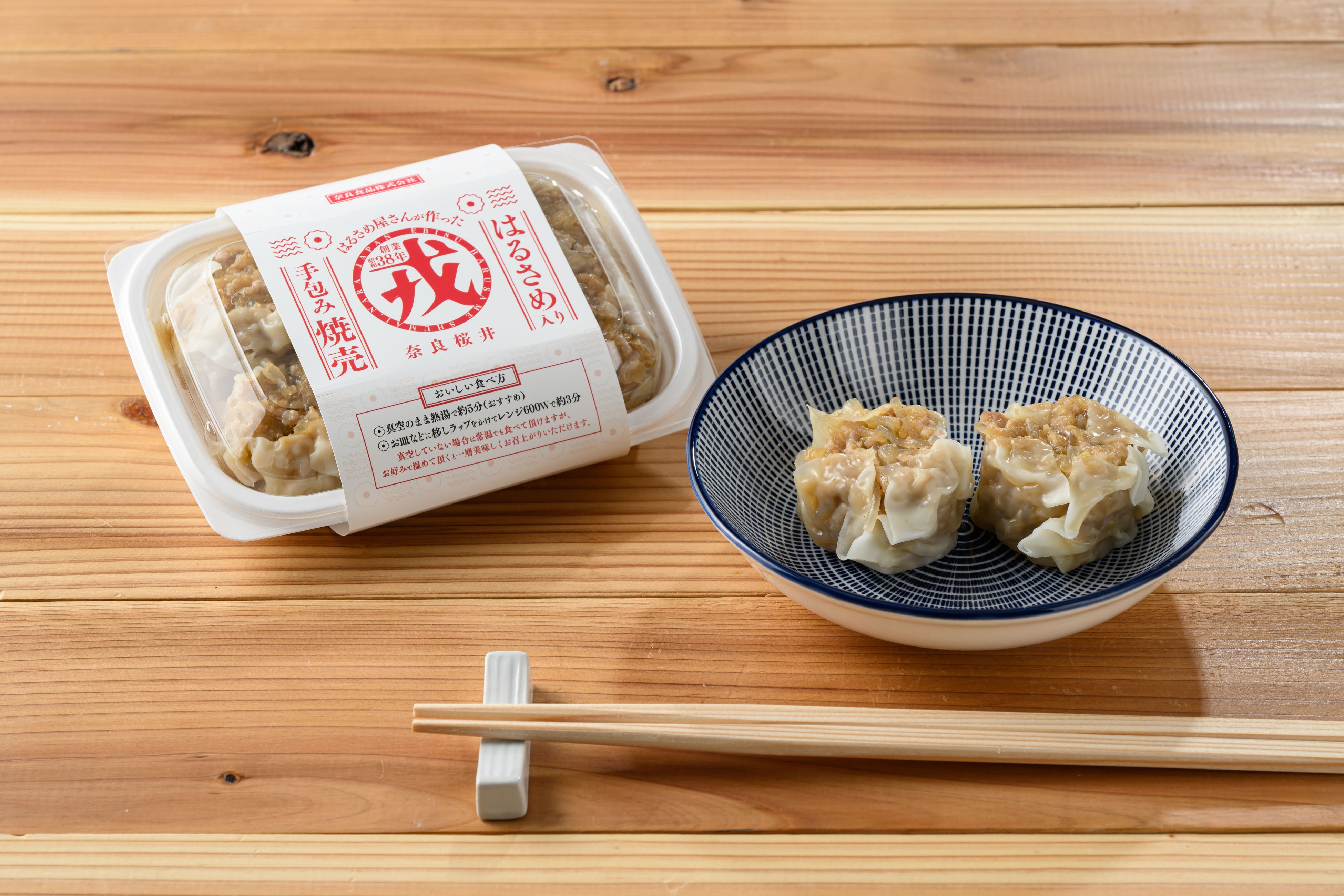 国産素材にこだわり作っている「戎はるさめ」を具材に練りこみ、一つひとつ手包みで作っています。使用している「戎はるさめ」は、はるさめとして唯一「大和さくらいブランド」として認定されています。九州産の甘藷(サツマイモ)でん粉・北海道産の馬鈴薯(ジャガイモ)でん粉を使用し、安全安心な素材にこだわっています。商工会指導員が事業者を訪問した際に出されたしゅうまいに入ったはるさめの食感がおもしろいと感じ、「ぜひ商品化を」と提案しました。商品の特徴が一目で分かるパッケージをデザイナーが担当。作り手のこだわりと販売コーディネーターからのアドバイスを取り入れ、パッケージが完成し商品化に至りました。