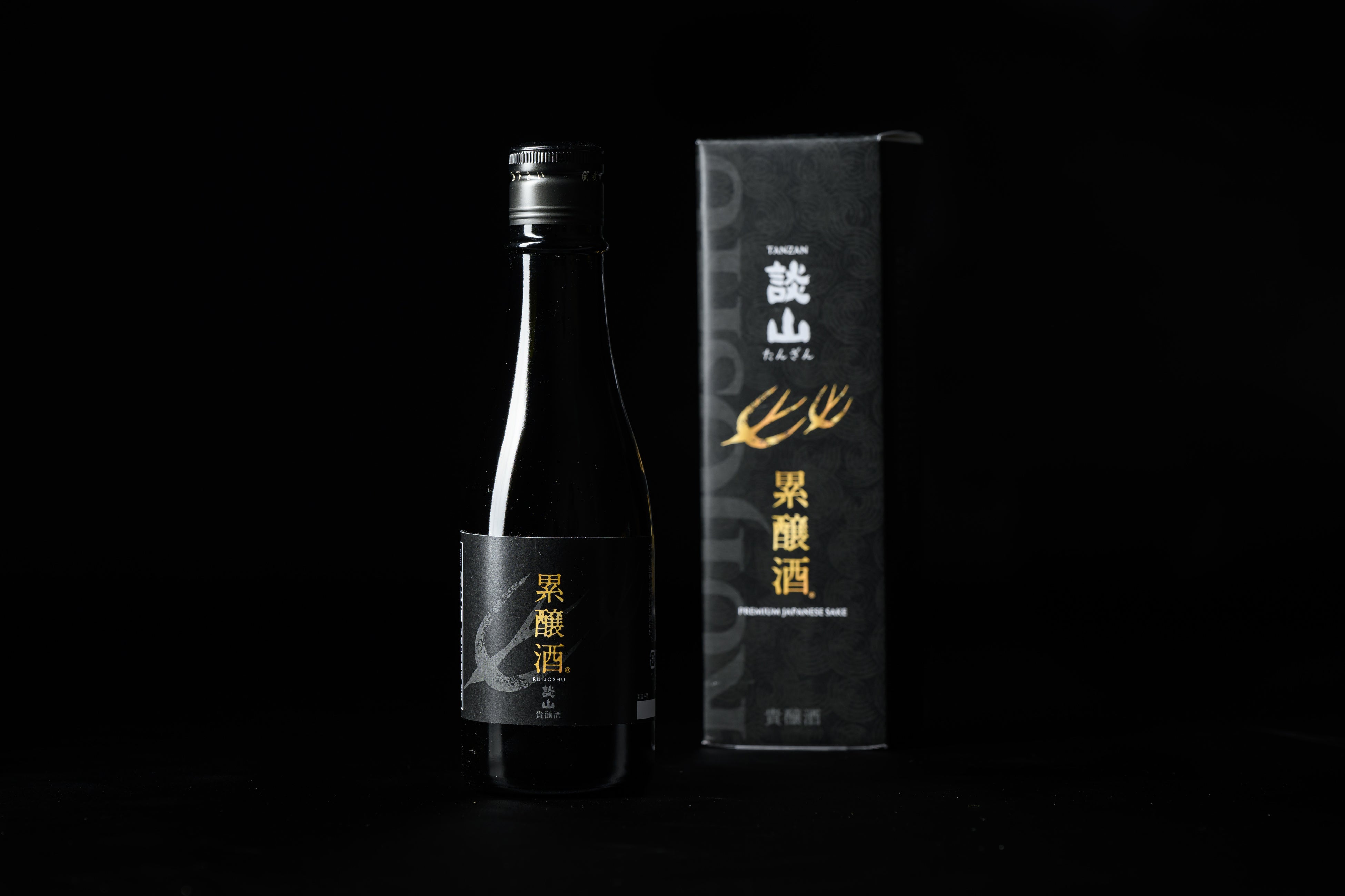 当蔵には「貴醸酒」というお酒があります。「貴醸酒」は、高価な日本酒を造る為に生まれたお酒で水の代わりに純米酒を使用して醸すという、とても贅沢なお酒です。本品「累醸酒」とは、純米酒で仕込む貴醸酒とは異なり、純米酒の代わりに貴醸酒を使用して醸す、まさに累醸して仕込む唯一無二の超贅沢な最高のお酒です。日本酒の歴史の古くをひもとき、平安時代の古文書「延喜式」にも記された御酒と呼ばれる酒(いったん発酵の終了したモロミを濾してできた酒)に通じる復古酒でもあります。まさに原点回帰、古代回帰のお酒であり、僧坊酒のふるさと、談山の蔵にふさわしいお酒です。歳月を重ねた高付加価値の商品に見合った高級感あるパッケージにすることで、ギフトや自分へのご褒美として購入される機会の増加を提案し、黒を基調としたデザインに仕上げました。