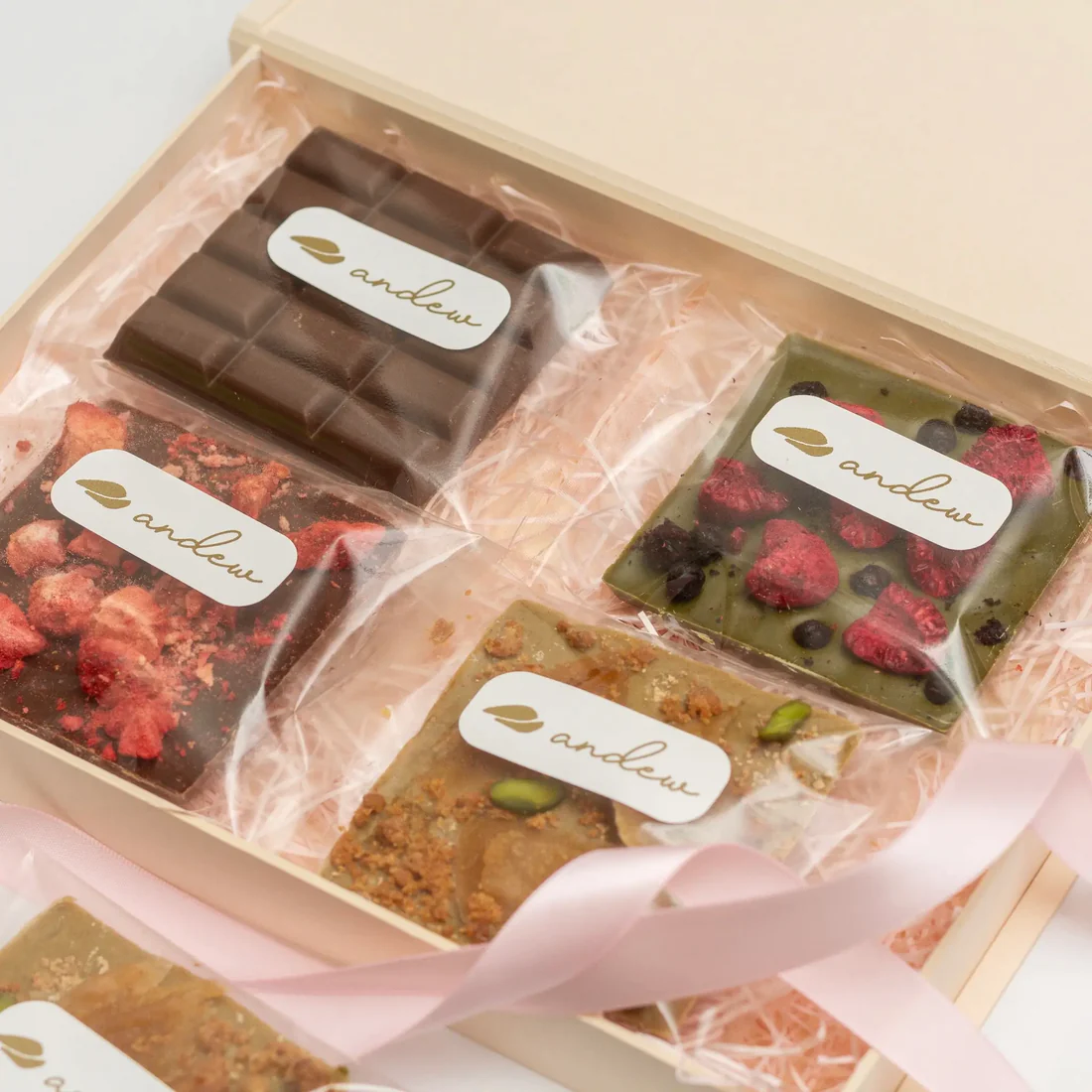 もらって嬉しい、カラフルな4種類のチョコレートタブレットが入ったギフトセットです。