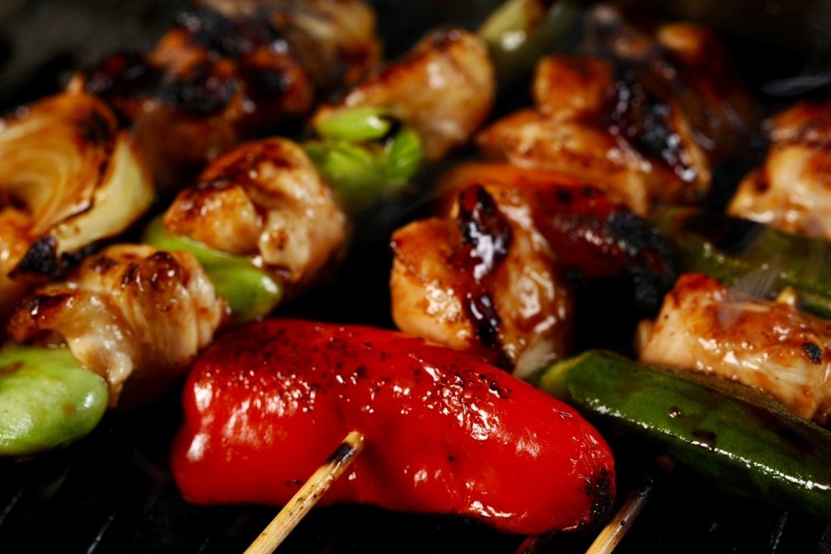 希少部位「鶏カルビ」と産直野菜の串焼き