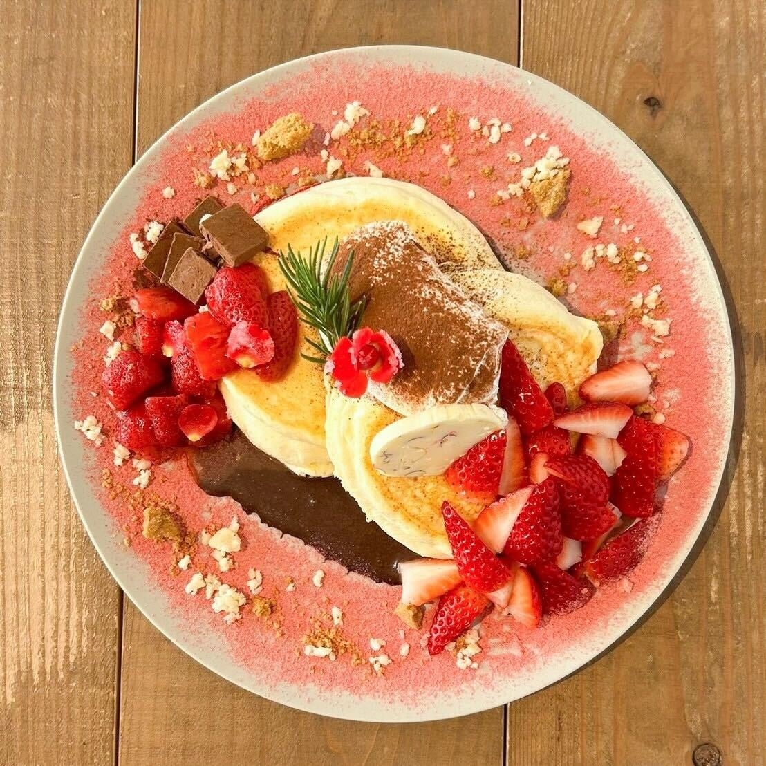 冬を彩るローズの華やかさと、フレッシュイチゴをふんだんにまとったティラミスパンケーキをぜひお楽しみください。