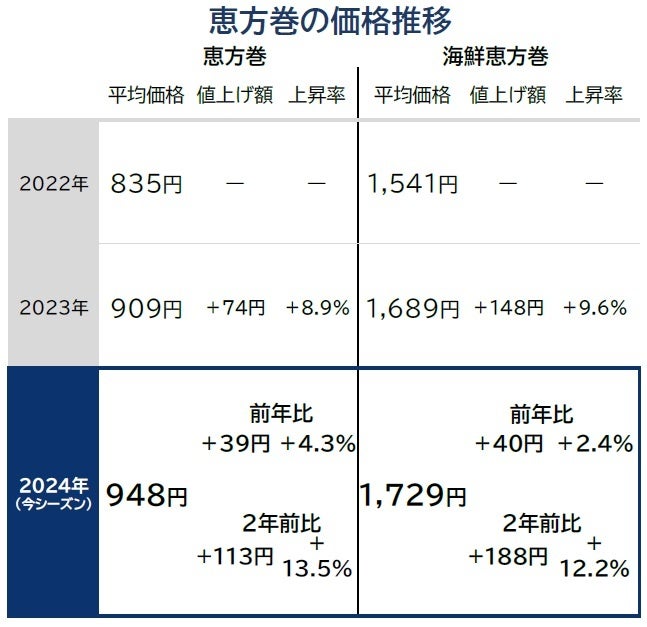 2024年節分シーズン「恵方巻」価格調査