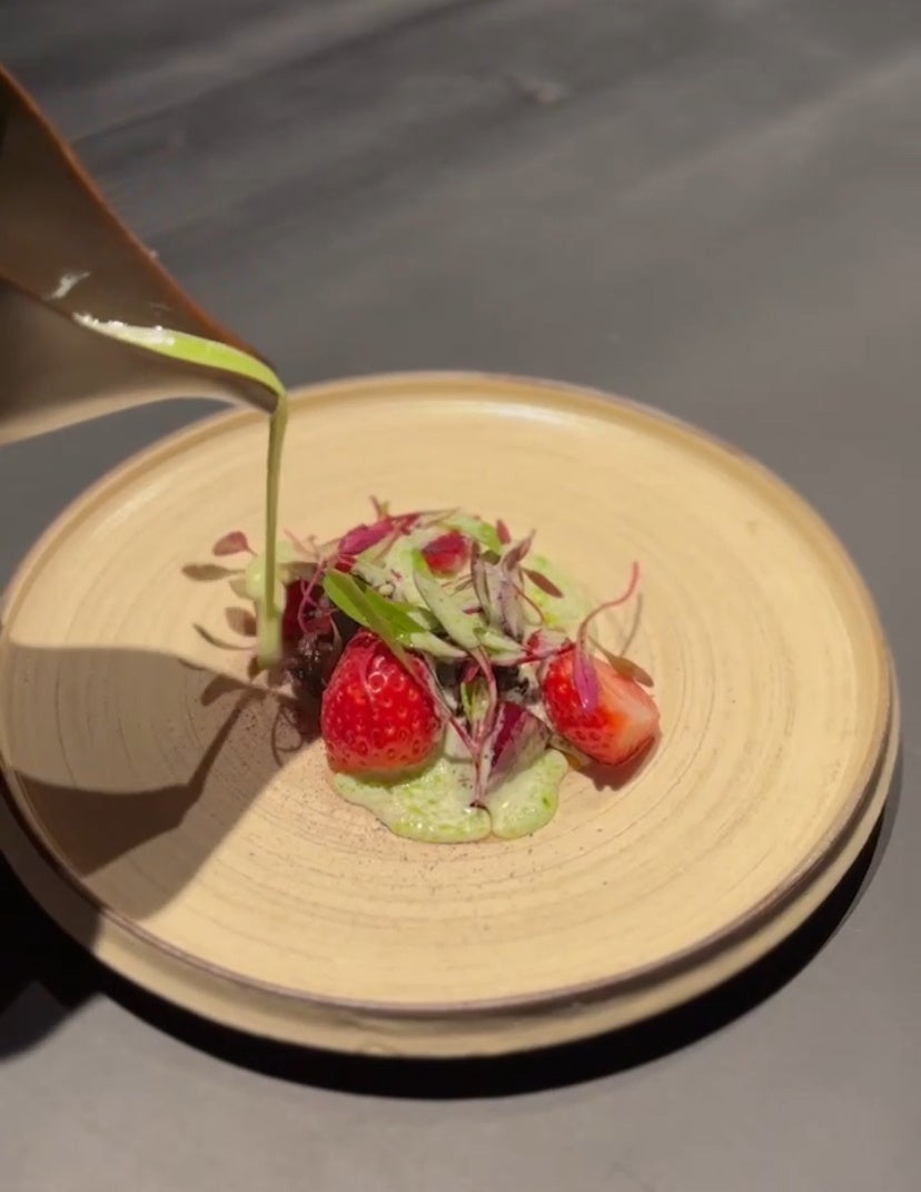 現在は生産者との連携を密にし、国産食材にこだわり、野菜中心の料理やフルーツを使った料理や酸味を使い分けた料理など、独自の料理を探求している。