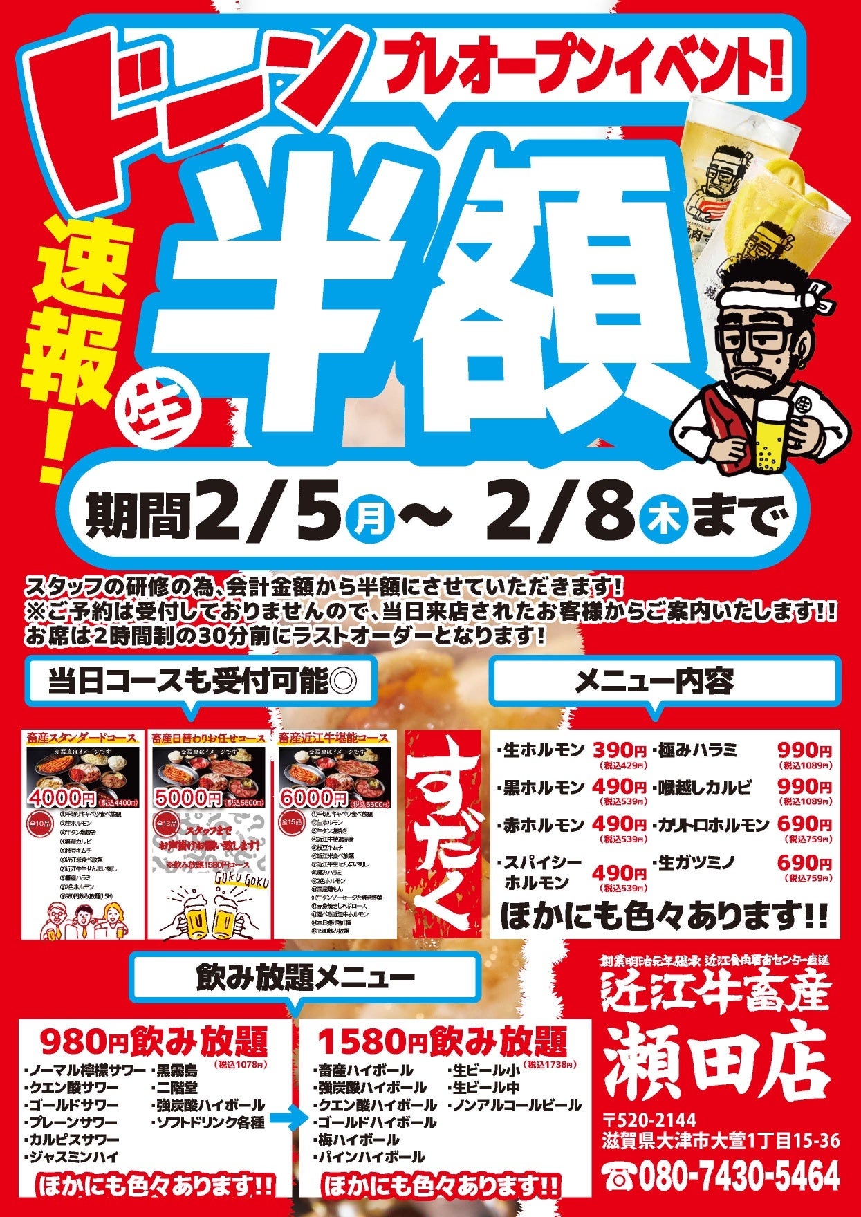 2024年2月5日(月)~2月8日(木)の期間中、プレオープンイベントとして、半額キャンペーンを開催いたします。