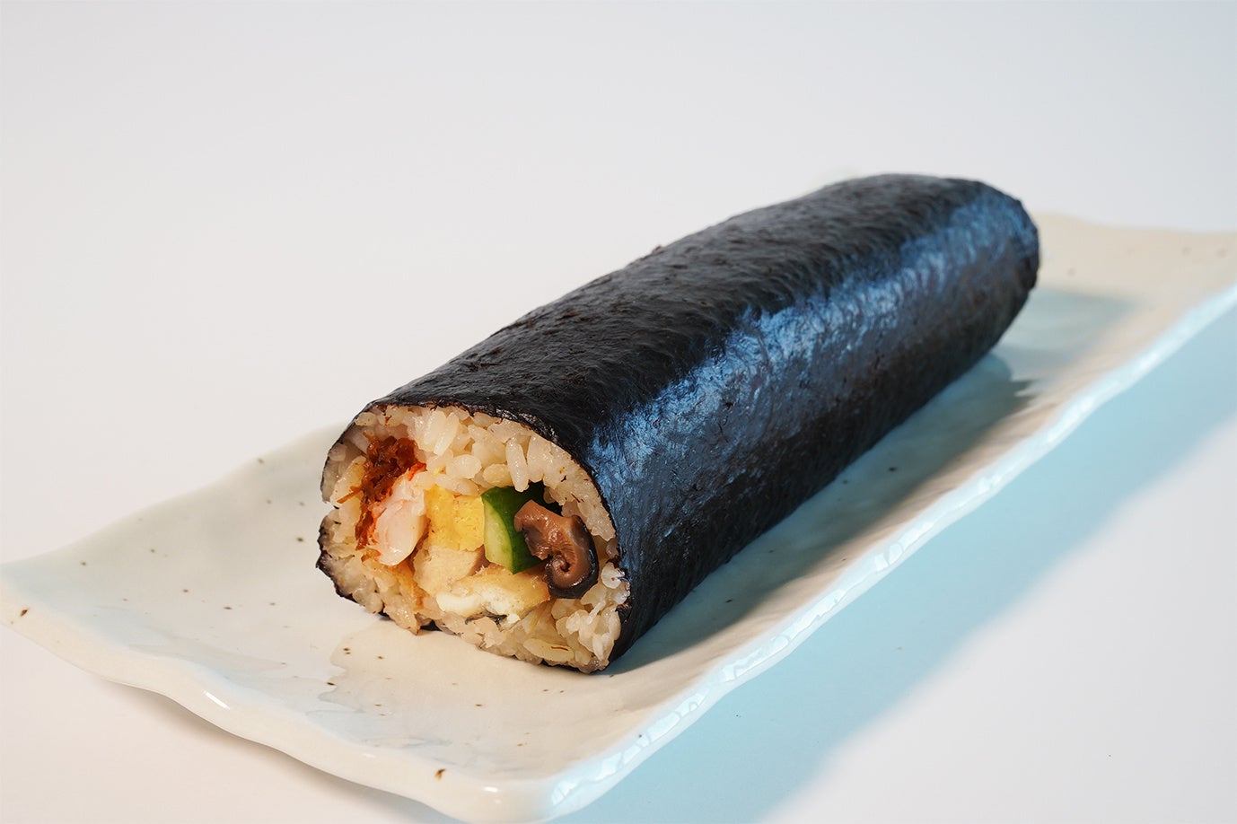 にんべんのかつお節だしを使用した「だし炊き込みご飯」に寿司酢を加え優しい味に仕上げました。具材には、かつお節だしをきかせた「椎茸煮」「高野豆腐」「だし焼き玉子」「きゅうりのピクルス」のほか、「煮あなご」、店舗「一汁旬菜 日本橋だし場」や「日本橋だし場 OBENTO」で販売するお弁当で人気の、かつお節を甘辛く煮込んだ「かつお生姜」を使用しています。かつお節・だし尽くしの味わい豊かな恵方巻をお愉しみください。