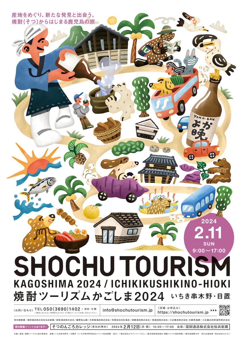 焼酎の本場、鹿児島県で開催される「焼酎ツーリズムかごしま2024」では、サツマイモの保護と焼酎文化の伝承を目的としたユニークな旅が提供されます。訪問者は、地元の焼酎蔵を巡り、伝統的な製法と革新的な取り組みの両方を体験できます。サツマイモ基腐病との闘いについて学びながら、鹿児島の風土とその文化を五感で感じることができます。