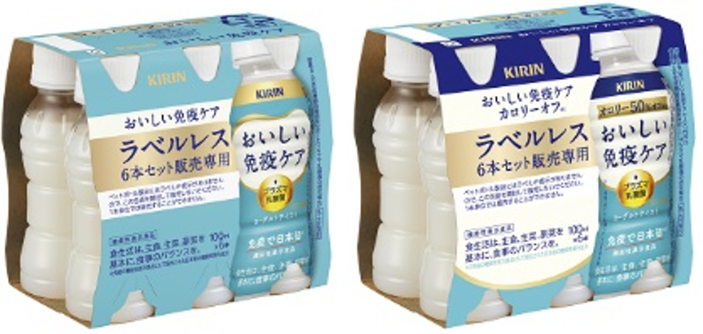 ・「キリン おいしい免疫ケア」「キリン おいしい免疫ケア カロリーオフ」100mlペットボトルのラベルレスを6本パックにしました。