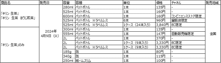 ※8 「キリン 生茶(525ml)」「キリン 生茶 ほうじ煎茶(525ml)」の量販店限定6本パック、「キリン 生茶(525ml・2L)」「キリン 生茶 ほうじ煎茶(525ml)」のEC限定ケース販売