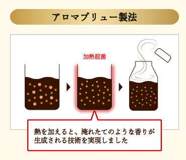 今回採用した「アロマブリュー製法」では、熱を加えるとコーヒーの淹れたてのような香りが生成される技術を用いて、今までつくりきれなかった、淹れたてのような香り高さを実現しました。