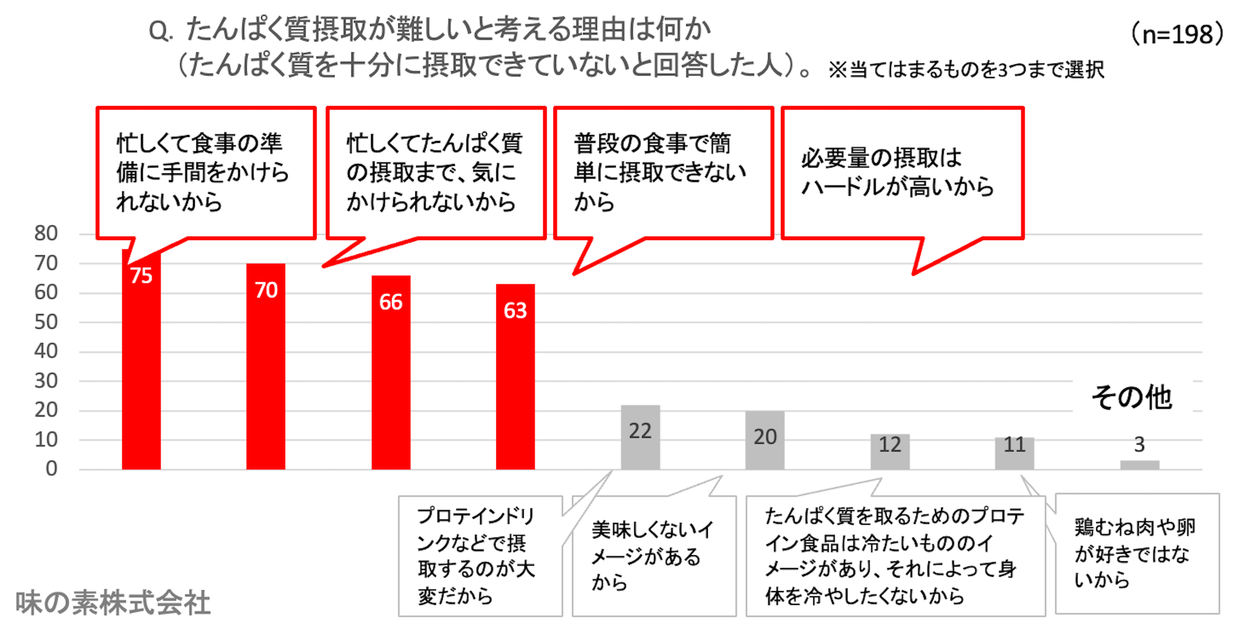 Q.たんぱく質を日常的に十分な量摂取することが難しいと考える理由は何か