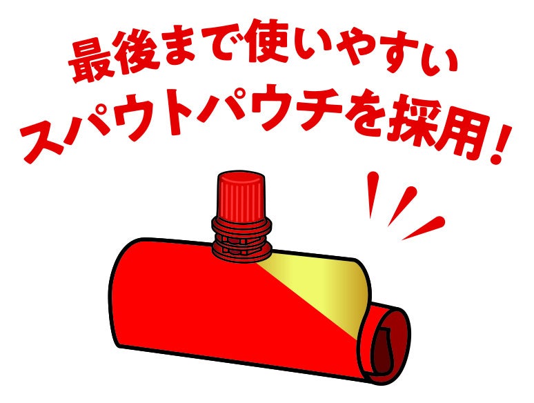 「スパウトパウチ」は使い切りやすい容量で、液だれしにくく、最後まで絞り出しやすい形状のパウチです。中身を洗わずにコンパクトに捨てることができ、冷蔵庫内で省スペース保存ができるところも便利なポイントです。