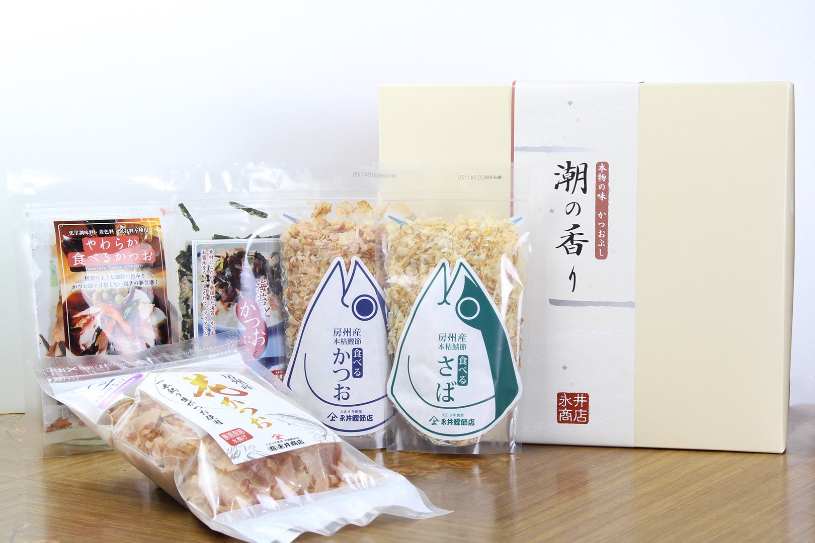 全国の料亭や蕎麦屋など出汁のプロに愛用される、本物の美味しさを詰め込んだギフトです。毎日の食卓に嬉しいふりかけ製品4品に、千葉ブランド水産物として認定された「房州産 花かつお」をセットにしました。