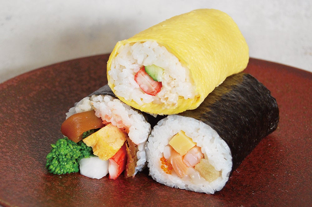 ツナマヨ、玉子、かに風味蒲鉾の3種で巻き上げたお子様も食べやすい恵方巻。濱田屋手づくりの玉子焼きは程良い甘さでお子様にも大人気のメニューです!