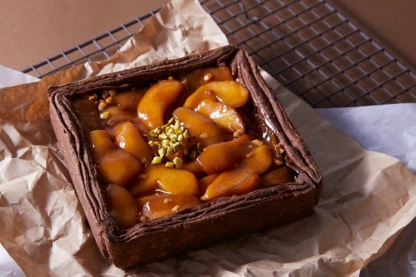 2~3月はパイの定番『アップルパイ』を販売します。オリジナルのチョコレートパイを四角く焼き上げ、中にはクランブルとブラウニーを敷き詰めて、約4個分のリンゴをたっぷり詰め込みました。