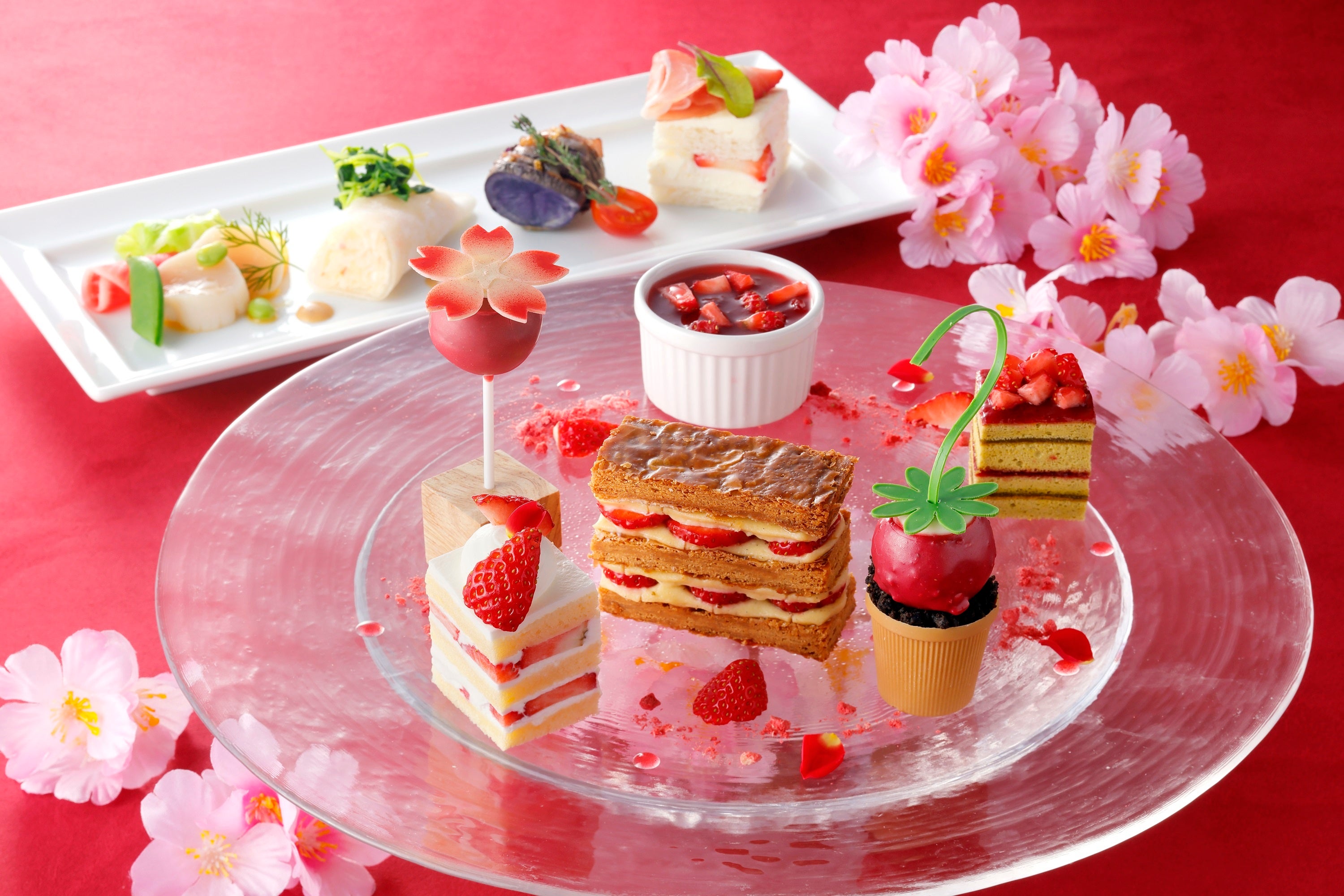 セイボリーには「苺のコンフィチュールと生ハム、クリームチーズのサンドウィッチ」や「春野菜と帆立貝の柑橘マリネ」など時季の素材を取り入れた全4品をご用意いたします。