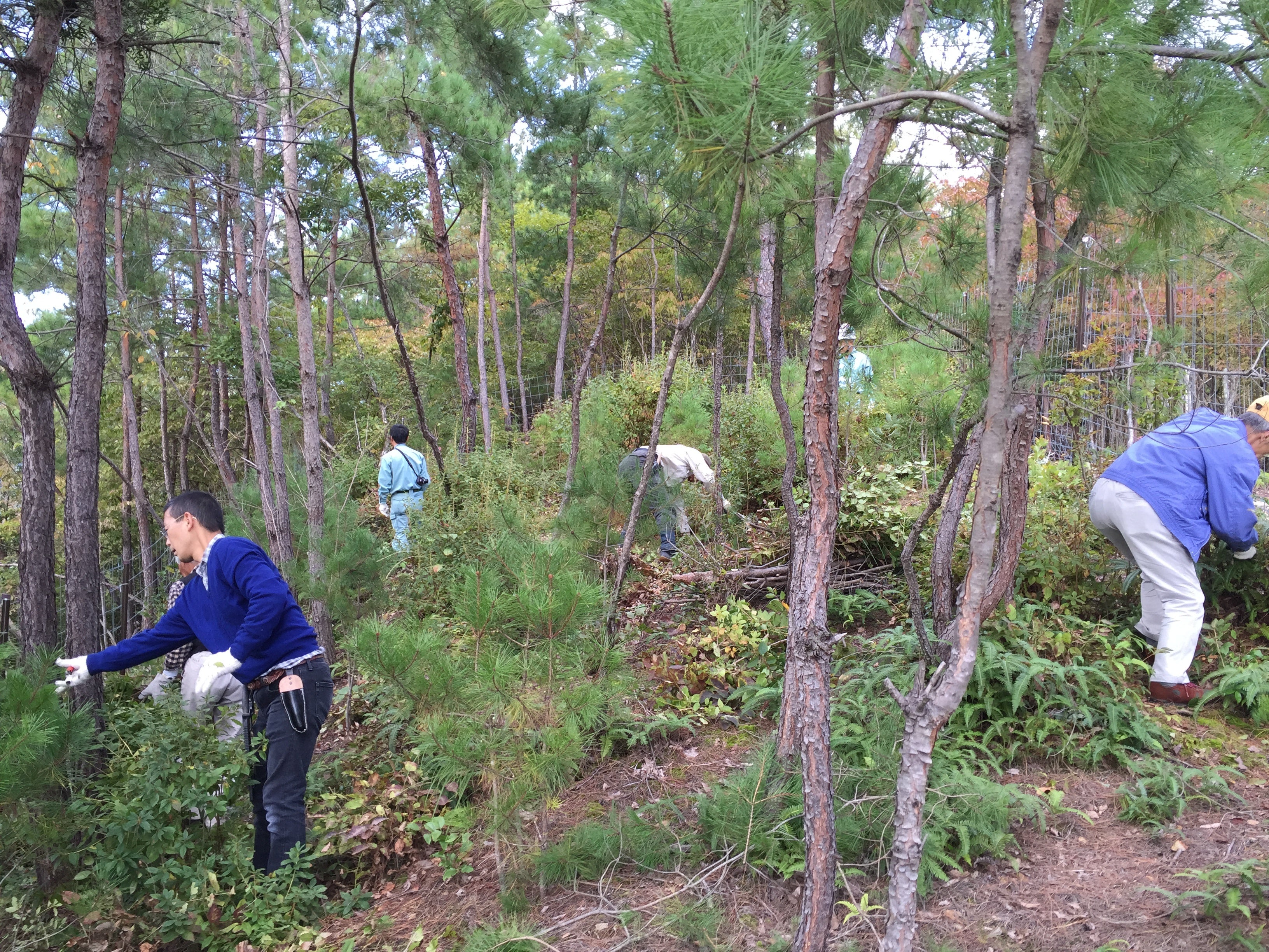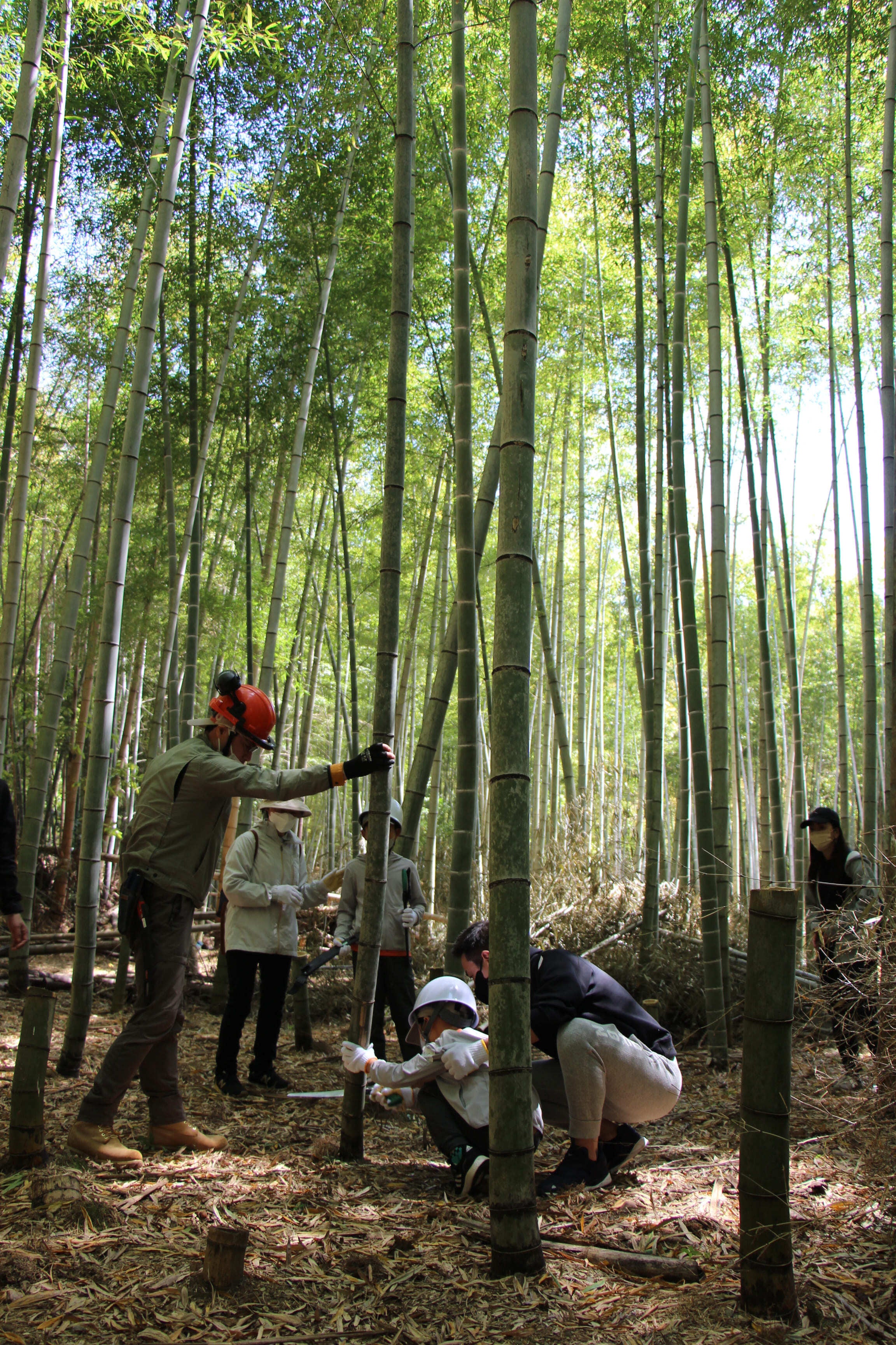 現在では取り組みの範囲を小倉山のアカマツ林のみならず周辺の竹林、水田に広げ、引き続き官民一体となり美しい自然景観を取り戻す活動を継続しています。当会発足当時に比べて美しくなった風景を求め、さらに多くの人々が訪れるようになり、観光地でもある当地域の地域経済の活性化にもつながっています。
