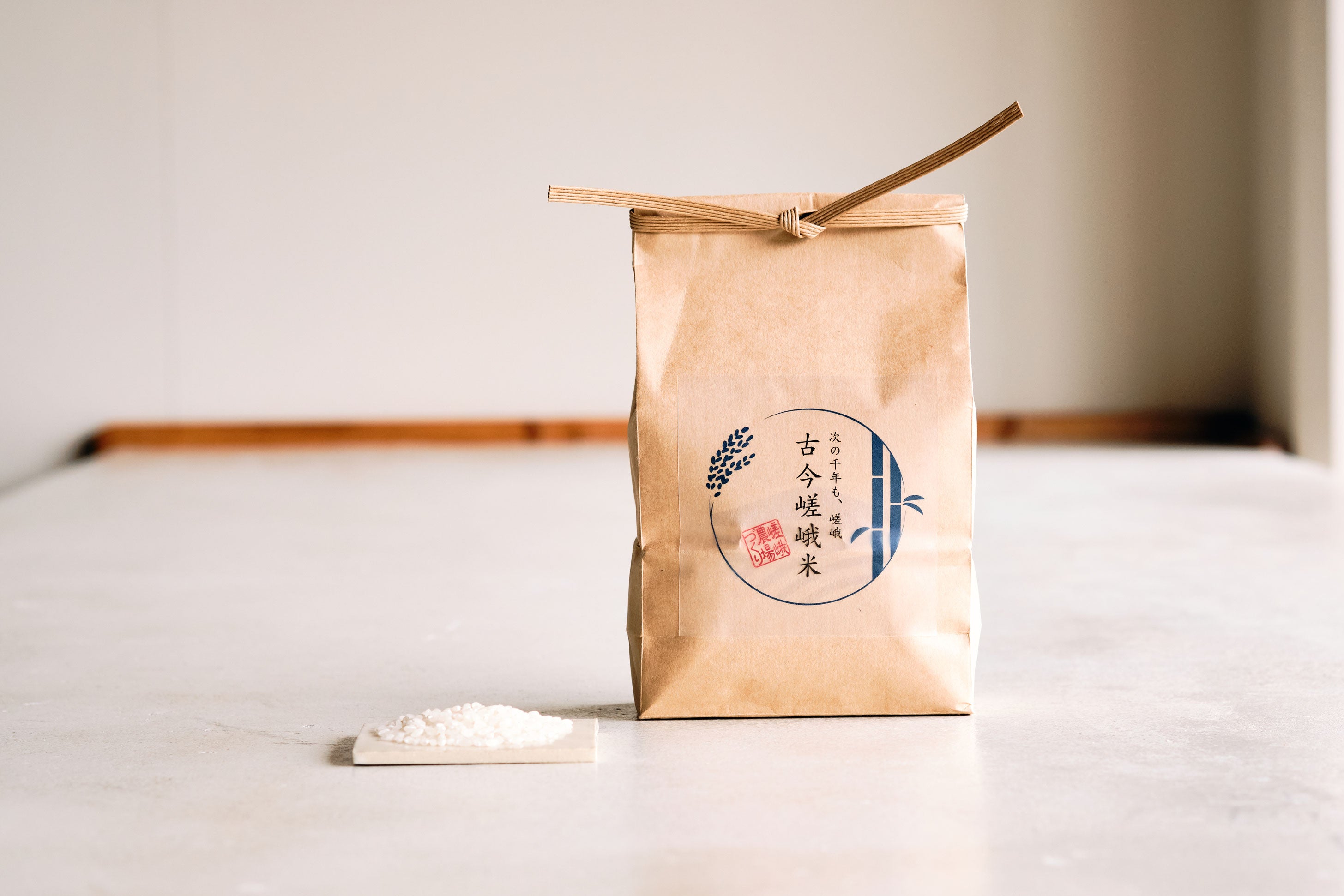 京都嵯峨野地域の稲穂たなびく水田と竹林の景観と、在来種や希少種を含む多様な生物を保全し、次の1000年に引き継ぐため、周辺の竹林を整備して発生する竹をチップ化・発酵した堆肥を土づくりに利用し、地域資源を活用して、持続可能なコメの栽培に取り組む嵯峨地域農場づくり協議会のお米。品種はキヌヒカリで、絹のようにつややかな米肌で、粘り気が少なくぱらっとしており、冷めても柔らかさを保つことが特徴です。2023年には有機JAS認証を取得しています。