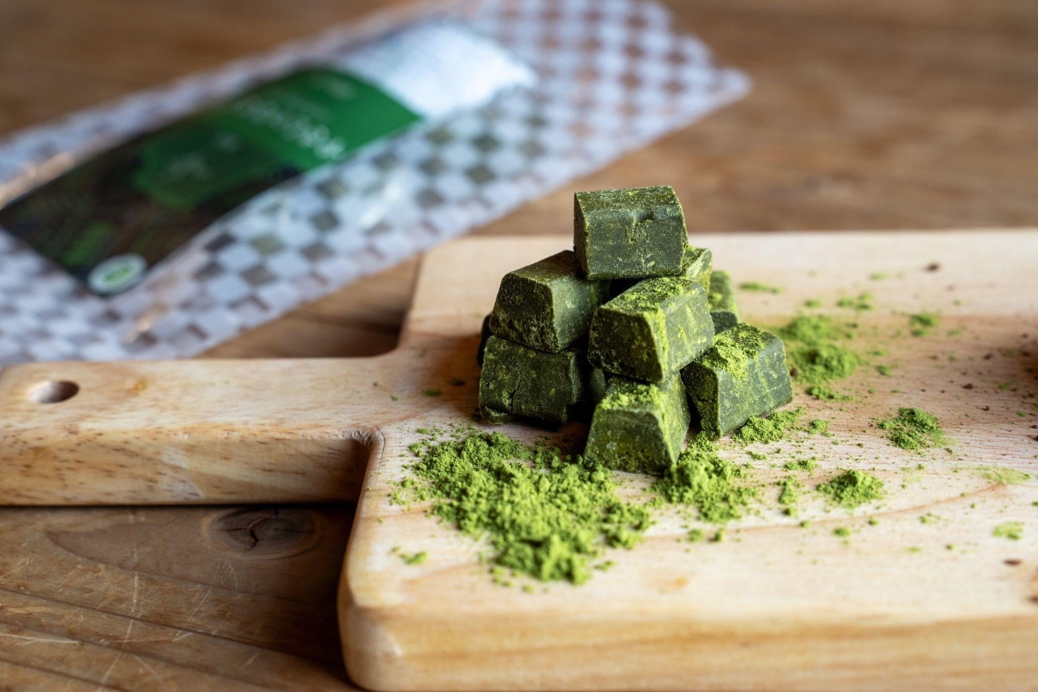 原材料:砂糖(さとうきび(国内製造))、ココアバター、ホエイプロテイン、抹茶、うるち米パフ、酵母、(一部に乳成分を含む)