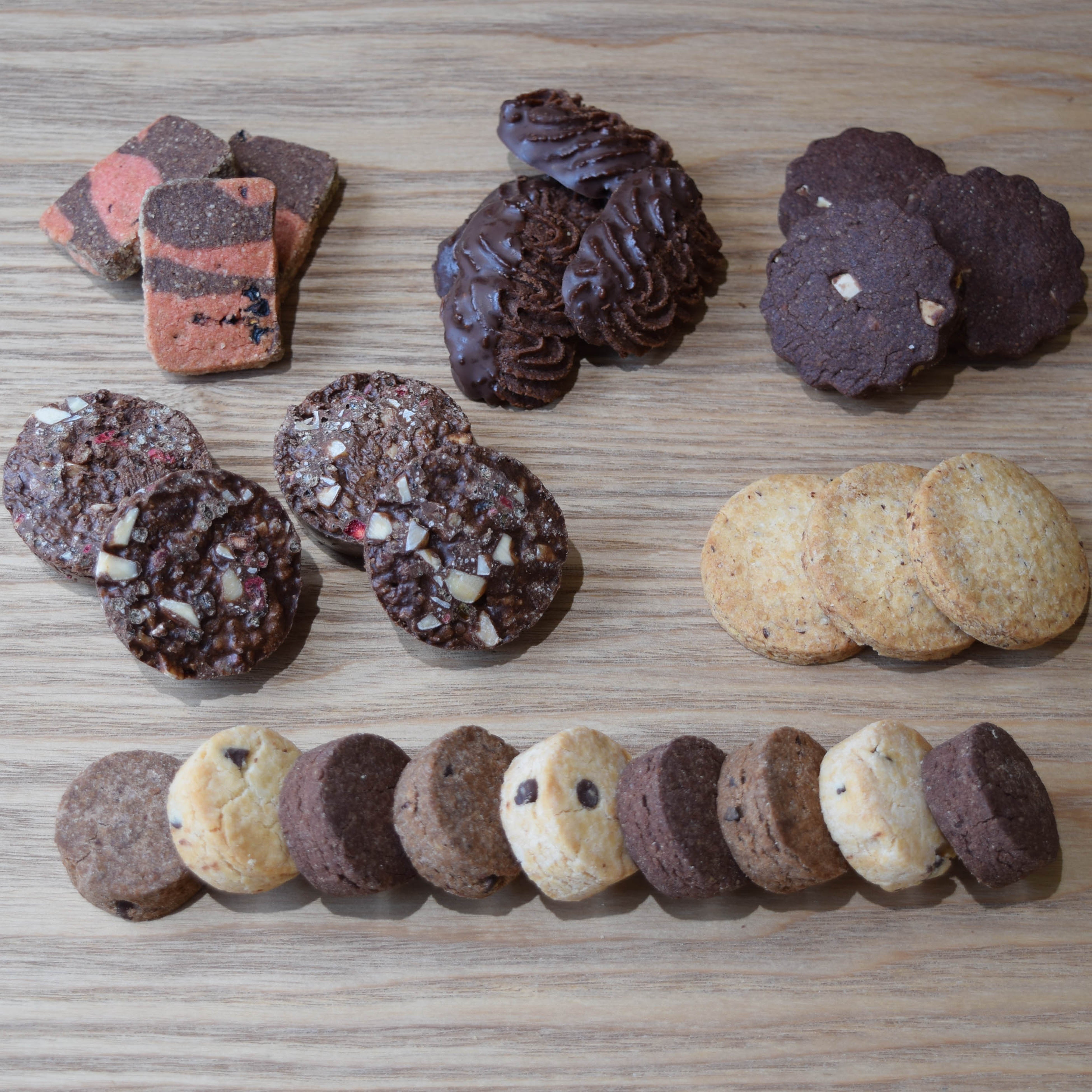ほぼ全てのクッキーにココアを使い、クッキーによって濃さを調整しつつ、一番濃厚なものはカカオマスを生地に練りこみリッチに仕上げています。