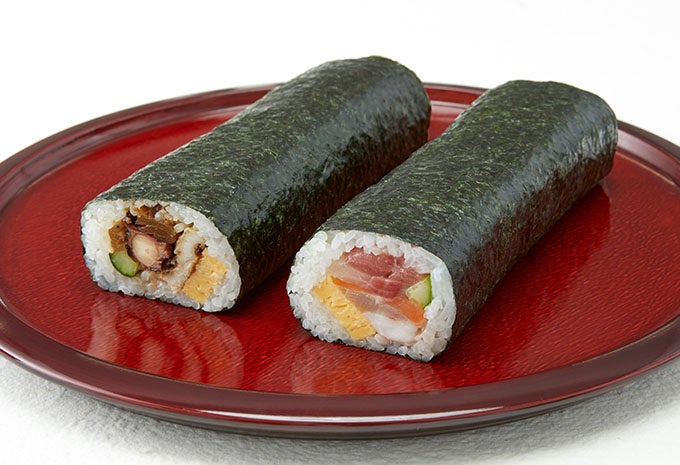 [左]明石海運七福巻、[右]豪華海鮮恵方巻 1本 各税込1,580円
