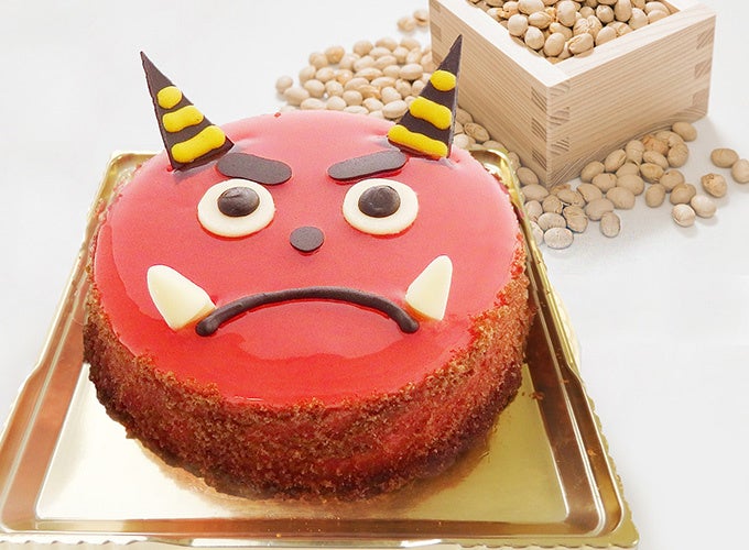 ベリームースとチョコレートムース、ココアスポンジを重ねたケーキを赤おにの形に仕上げました。節分気分をスイーツでも味わえるのは今だけ♪怖い?可愛い?おにさんのケーキです。