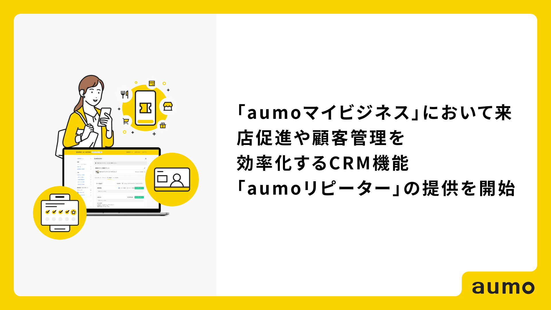 「aumoマイビジネス」の新機能として、導入店舗への来店促進や顧客管理を効率化するCRM機能「aumoリピーター」の提供を開始することで、店舗への集客、予約・来店を強化し、さらにリピート(再来店)の促進に至るまで、ユーザーの来店行動に関わる全てのプロセスでアプローチできるようになります。