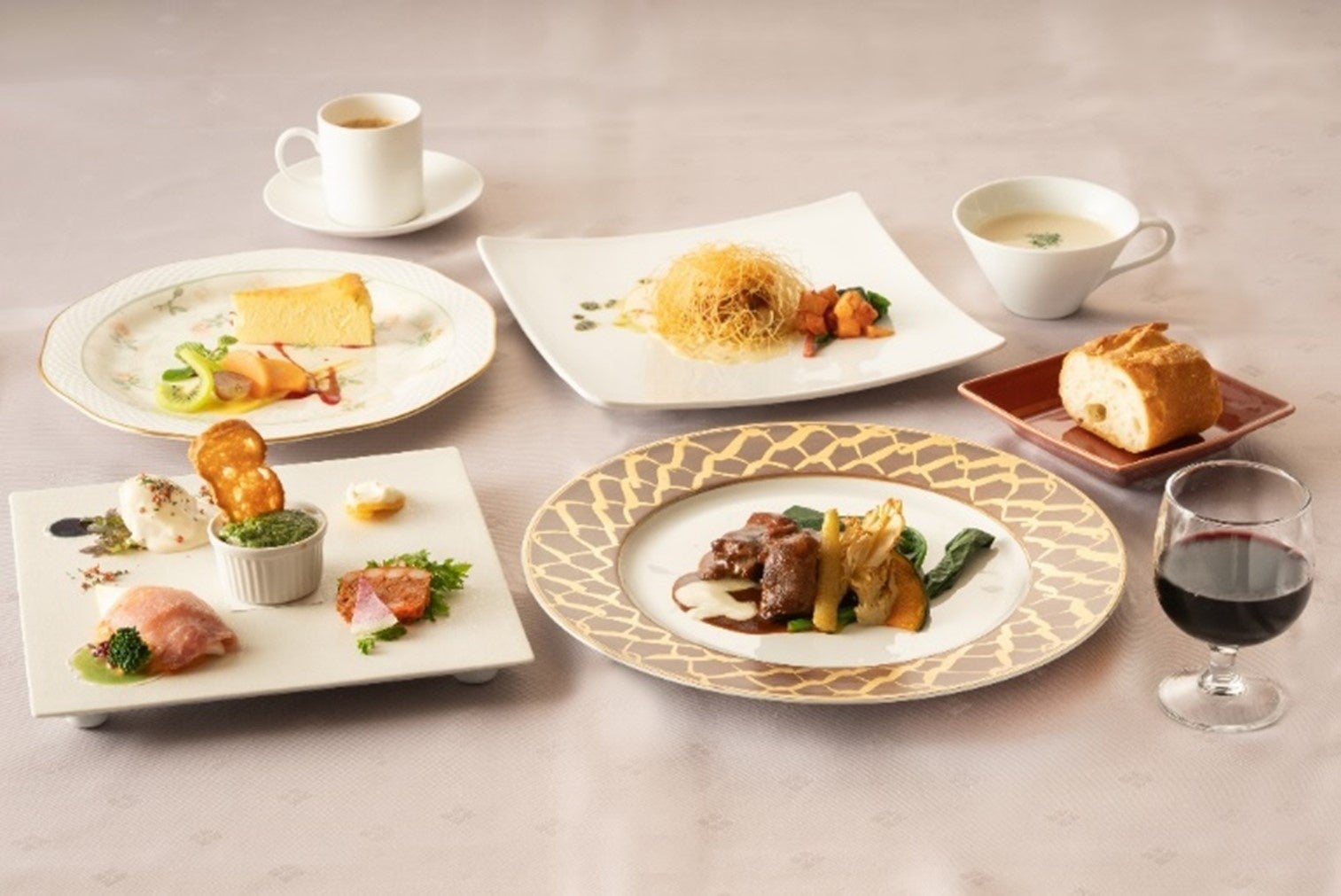 メインは、海老と白身魚のカダイフ焼きの魚料理と、但馬若鶏の赤ワイン煮込みの肉料理をご用意しており、天橋立ワイン(※)と召し上がっていただくことで、食材の美味しさを惹き立てます。