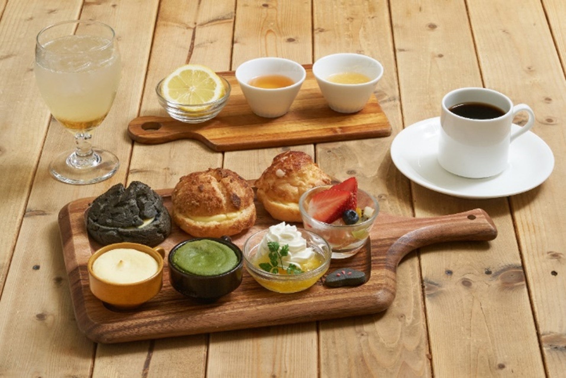 シュークリームは、シンプルな定番のシュークリームからアーモンドクッキー、丹後くろまつ号をモチーフにした竹炭を使用した黒いシュー皮の3種で、レモンジャムや季節のフルーツなどをトッピングし、アレンジを楽しんでいただけます。また、ドリンクは暖かくなる春や暑い夏にもピッタリのスッキリとした味わいのオリジナルレモネードをご用意しており、ご自身でお好みの酸味に調整いただけます。