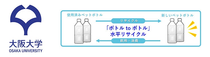 大阪大学の箕面キャンパス・吹田キャンパス・豊中キャンパスで集められた使用済みペットボトルを当社の飲料用ペットボトル容器として再生・使用することで「ボトルtoボトル」水平リサイクルを実現します。