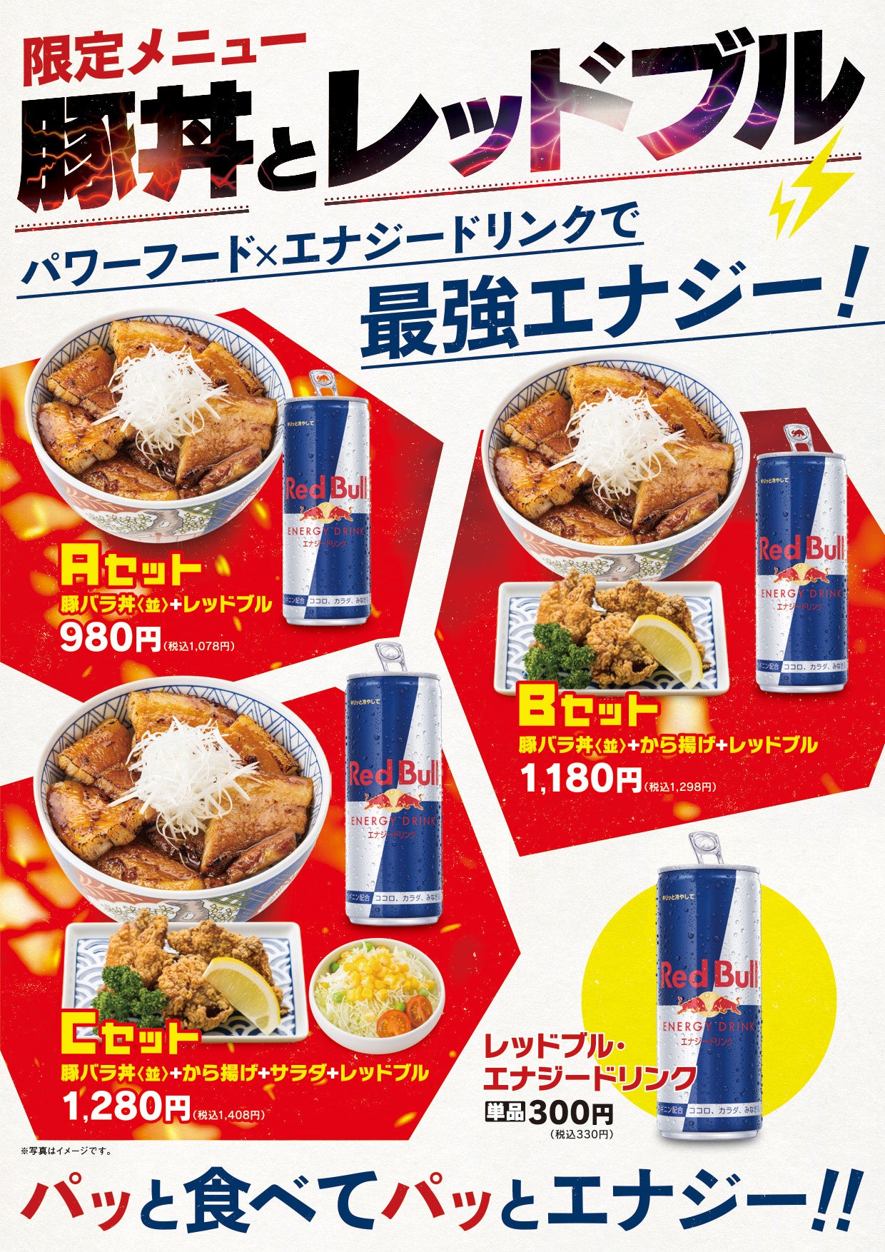 豚バラ丼〈並盛〉とレッドブルの限定メニューをお得なセット価格で販売開始