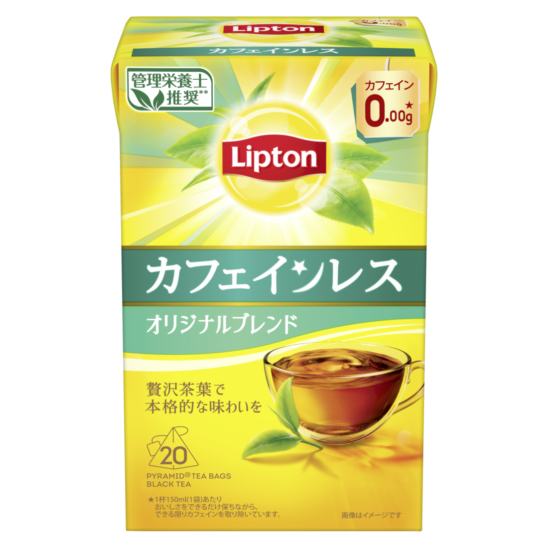 この度管理栄養士推奨マークがついてリニューアルする、発売当初から定番フレーバーとして人気の「リプトン カフェインレスティー オリジナルブレンド」は、摘みたて茶葉のような爽やかな香りが特徴。夜だけでなく食事や日中のリラックスタイムなど、様々なシーンで味わえる一杯に仕上げています。