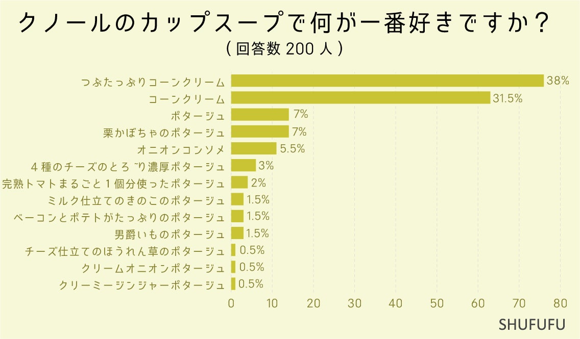 一番好きなクノールのカップスープに関しては、「つぶたっぷりコーンクリーム」が1位になりました。