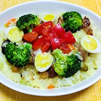 アルファ化米と焼き鳥缶のトマトリゾット(ゆみさん)